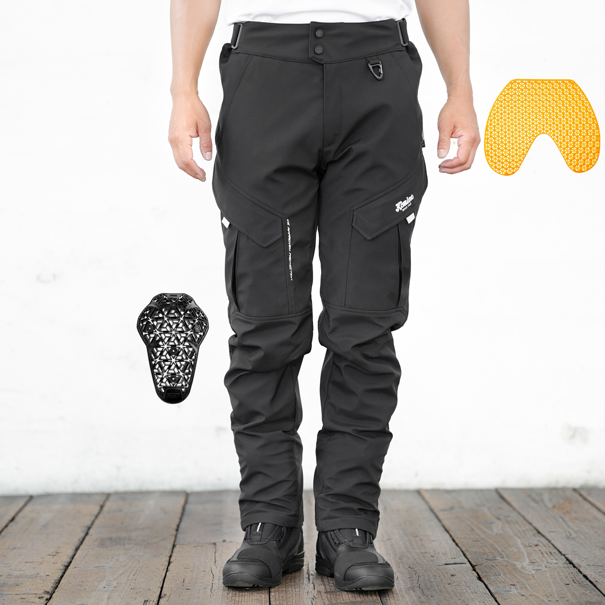 Equipped with flexible ENIGMA G2 protectors on the knees (CE Level 2 certified)