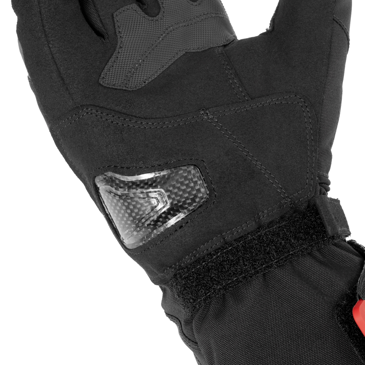 7.4V battery-powered heated gloves.Equipped with knuckle protectors and a carbon palm slider.