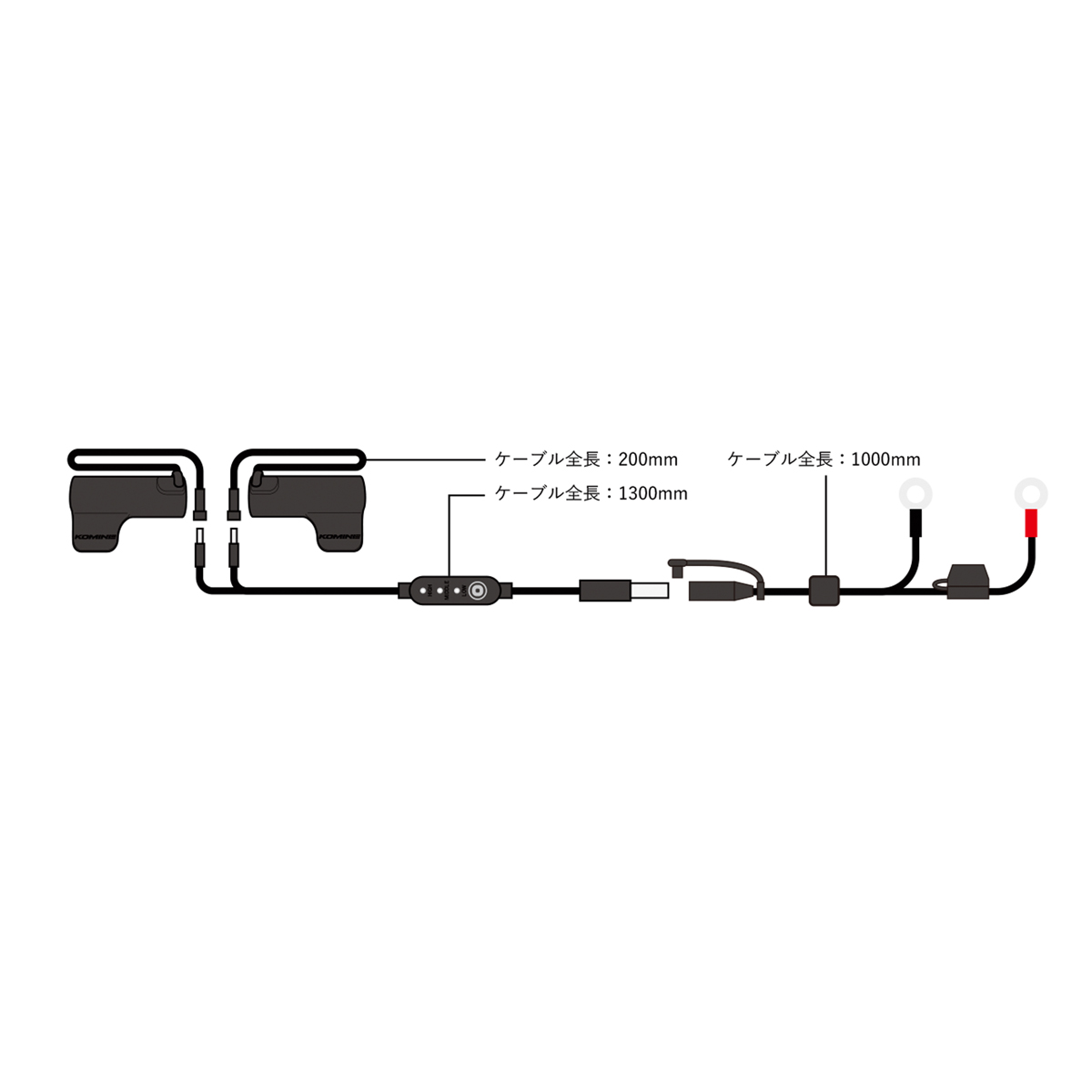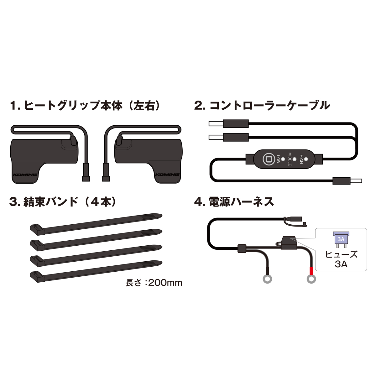 スリップオンタイプのはめ込み式グリップヒーター。合計20Wのハイパワー仕様で通常のグリップヒーター並みの暖かさを実現。・DC12V仕様
